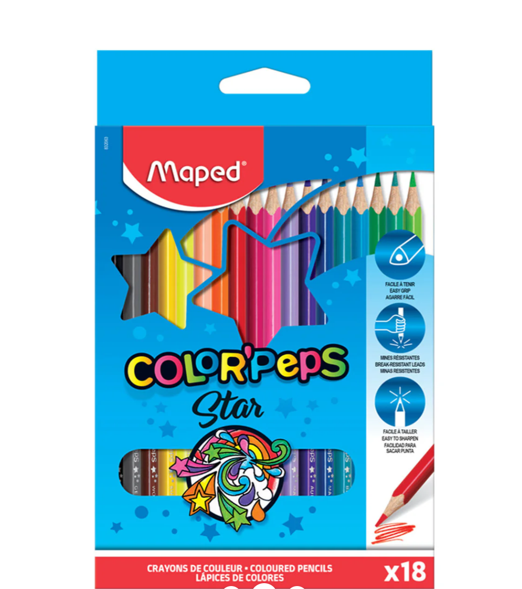 Set of 18 high-quality colored pencils with vibrant shades, resistant leads, and an easy-to-sharpen design. Perfect for school, drawing, and creative projects.
