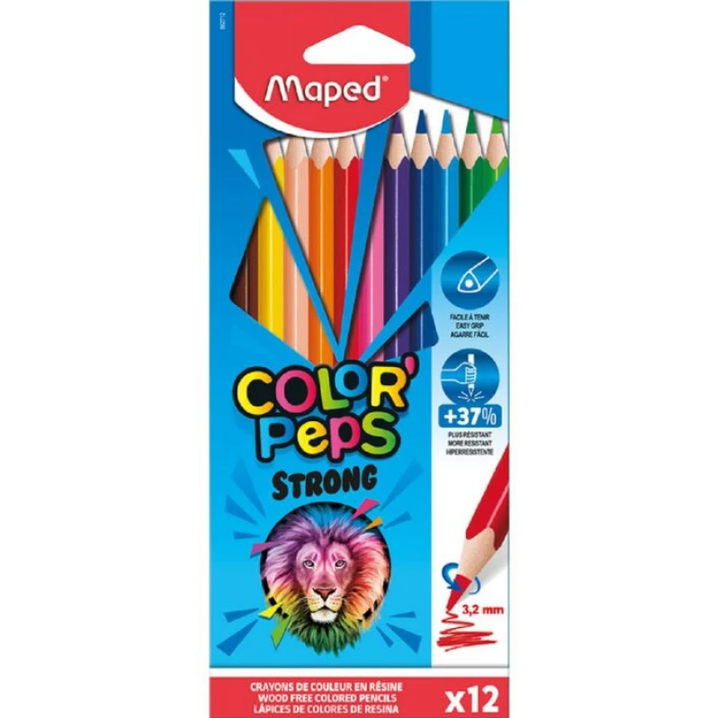 A set of 12 wood-free colored pencils made of resistant resin, with 37% stronger break-resistant leads (3.2mm). Easy to grip, easy to sharpen, and designed for durability during intense coloring.