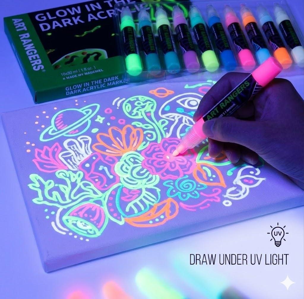 Bring your artwork to life—even in the dark—with Art Rangers Glow in the Dark Acrylic Set.