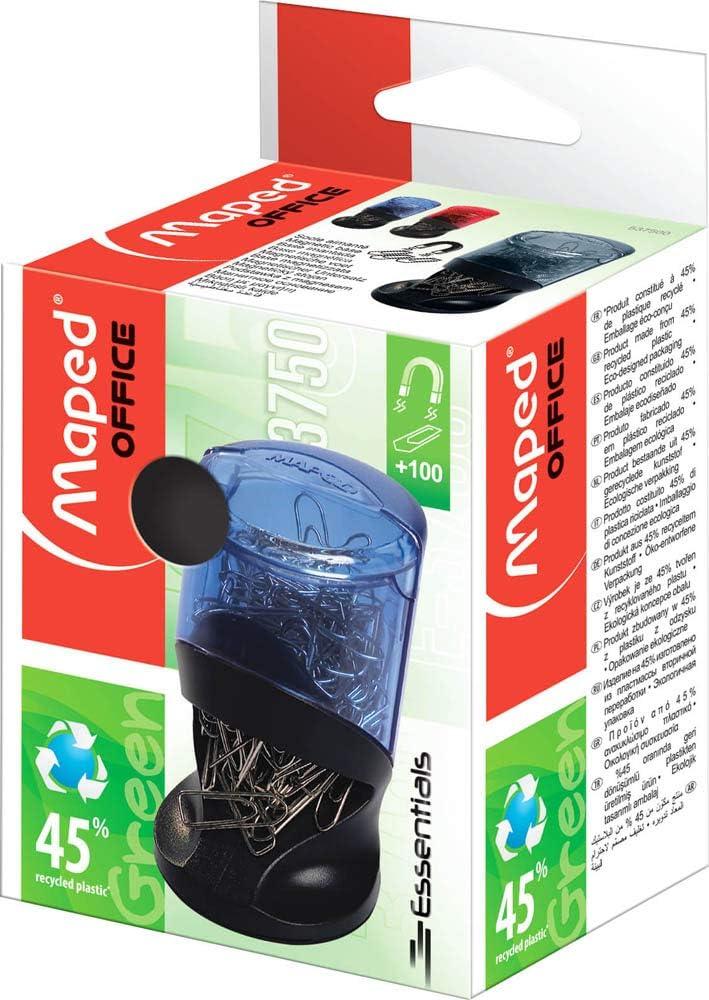 Maped Office Magnetic Paper Clip Holder made from 45% recycled plastic. Includes 100 paper clips and provides easy access with a magnetic top.