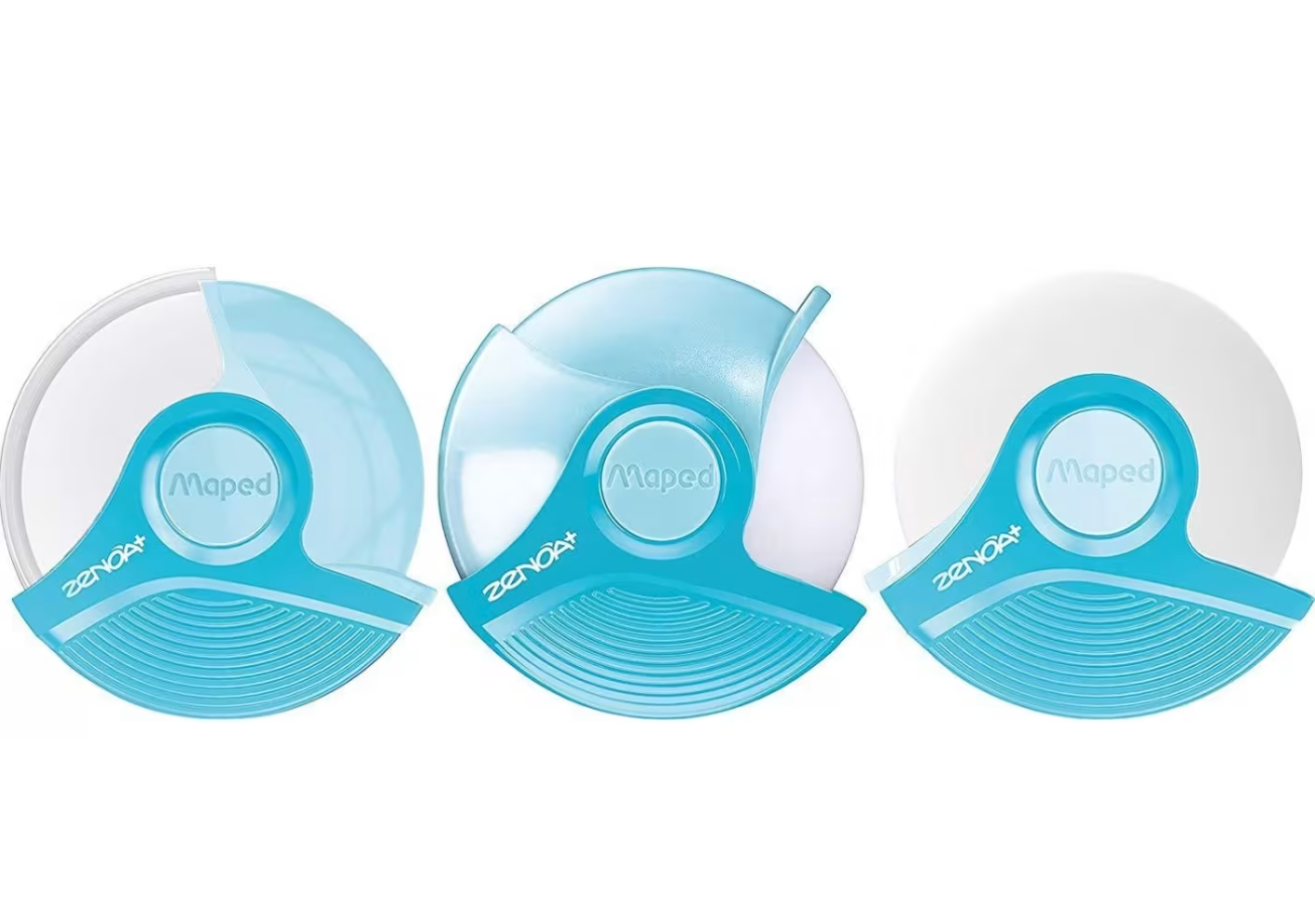 Stylish and ergonomic erasers with a protective plastic case. Available in assorted colors (blue, pink, purple). Provides clean erasing with minimal residue, perfect for school or office use.