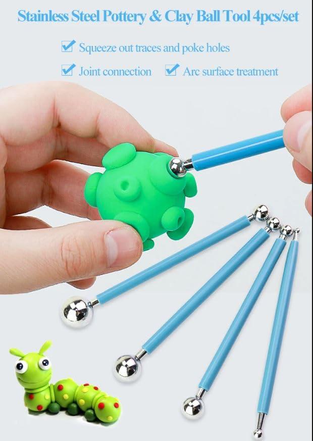 Set includes 4 metal ball tools with 8 different ball size heads. Ideal for clay, fondant, moulding, and DIY craft projects. Durable and precise.